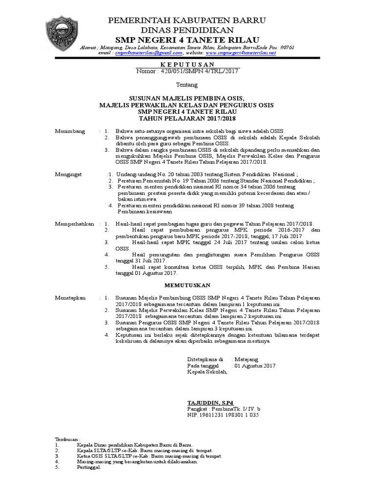 Pengertian Surat Keputusan OSIS MTS