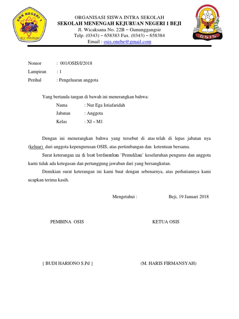 Surat Keputusan (SK) OSIS MTS adalah dokumen resmi yang dikeluarkan oleh Organisasi Siswa Intra Sekolah (OSIS) pada tingkat Madrasah Tsanawiyah (MTs). SK ini berisi keputusan atau persetujuan dari OSIS MTS terkait kegiatan atau program yang akan dilaksanakan di sekolah.